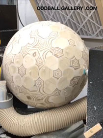 The vessels are made up of 180 triangles. The triangles are assembled into 12 pentagons and 20 hexagons. These shapes are then glued together to form a 180 sided hollow ball. Because of the construction, the ball is nearly round already. Only about 1/4" of wood is taken off to form a true smooth sphere.